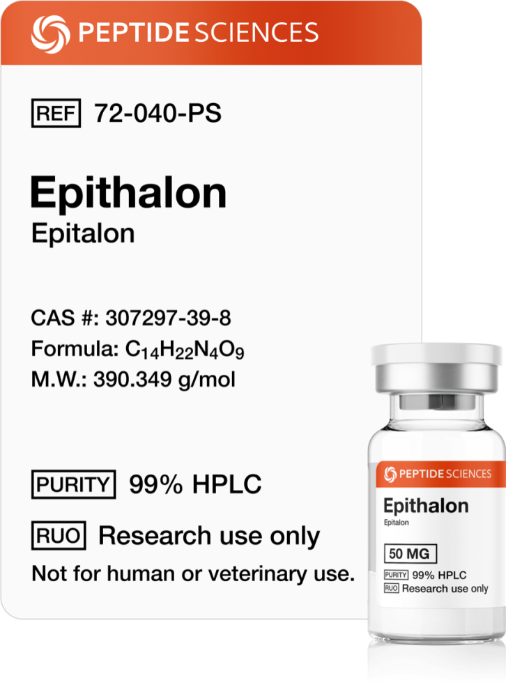 Epithalon (also referenced as Epitalon, Epithalone, or Epithalamin in portions of the scientific literature) is a synthetic tetrapeptide with the primary sequence Ala-Glu-Asp-Gly. It is used as a laboratory reagent in experimental models investigating telomere-associated enzymology, peptide–nucleic acid interactions, transcriptional regulation, and circadian-linked signaling networks. Published studies include cell-based experiments and in-vivo animal work assessing molecular endpoints such as telomerase-associated activity, gene expression patterns, and pathway-level biomarkers under controlled study conditions.