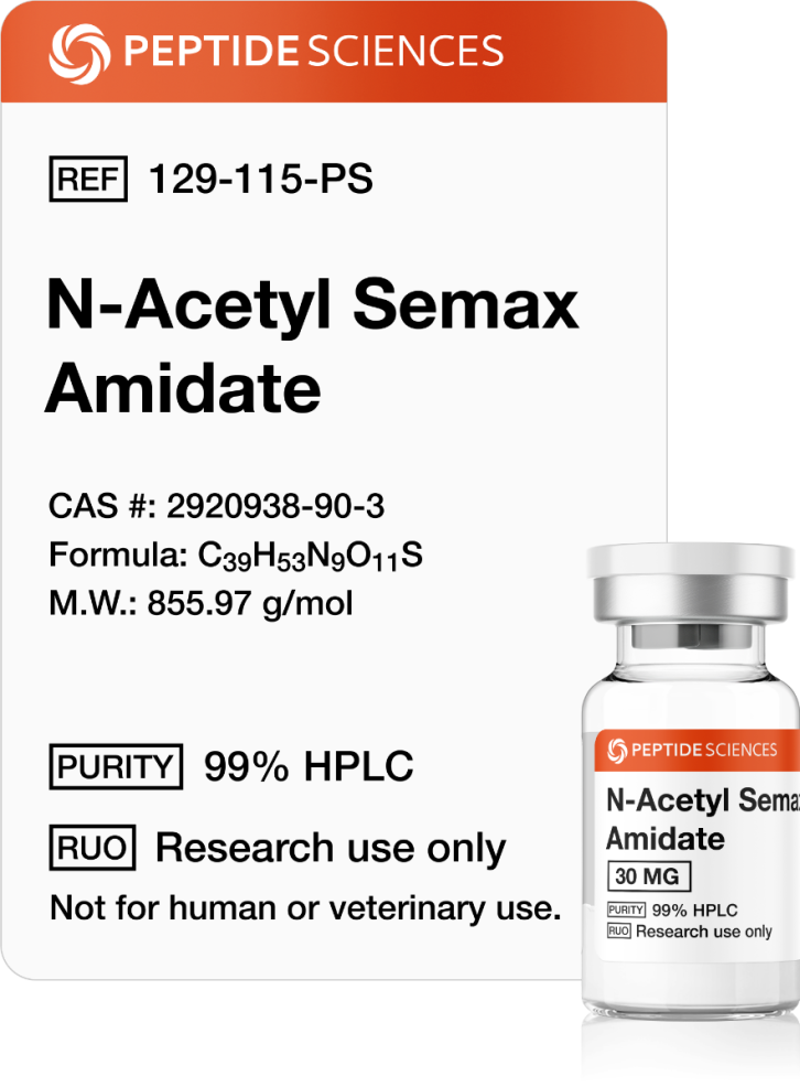 N-Acetyl Semax is a synthetic peptide derived from the ACTH(4-7) fragment and chemically modified through N-terminal acetylation. In laboratory research, this modification is used to investigate peptide stability, intracellular signaling, and transcriptional responses in neural and peripheral tissues. N-Acetyl Semax is studied exclusively in controlled experimental systems, including cellular assays and in vivo animal models, as a tool for probing peptide-mediated regulatory mechanisms.